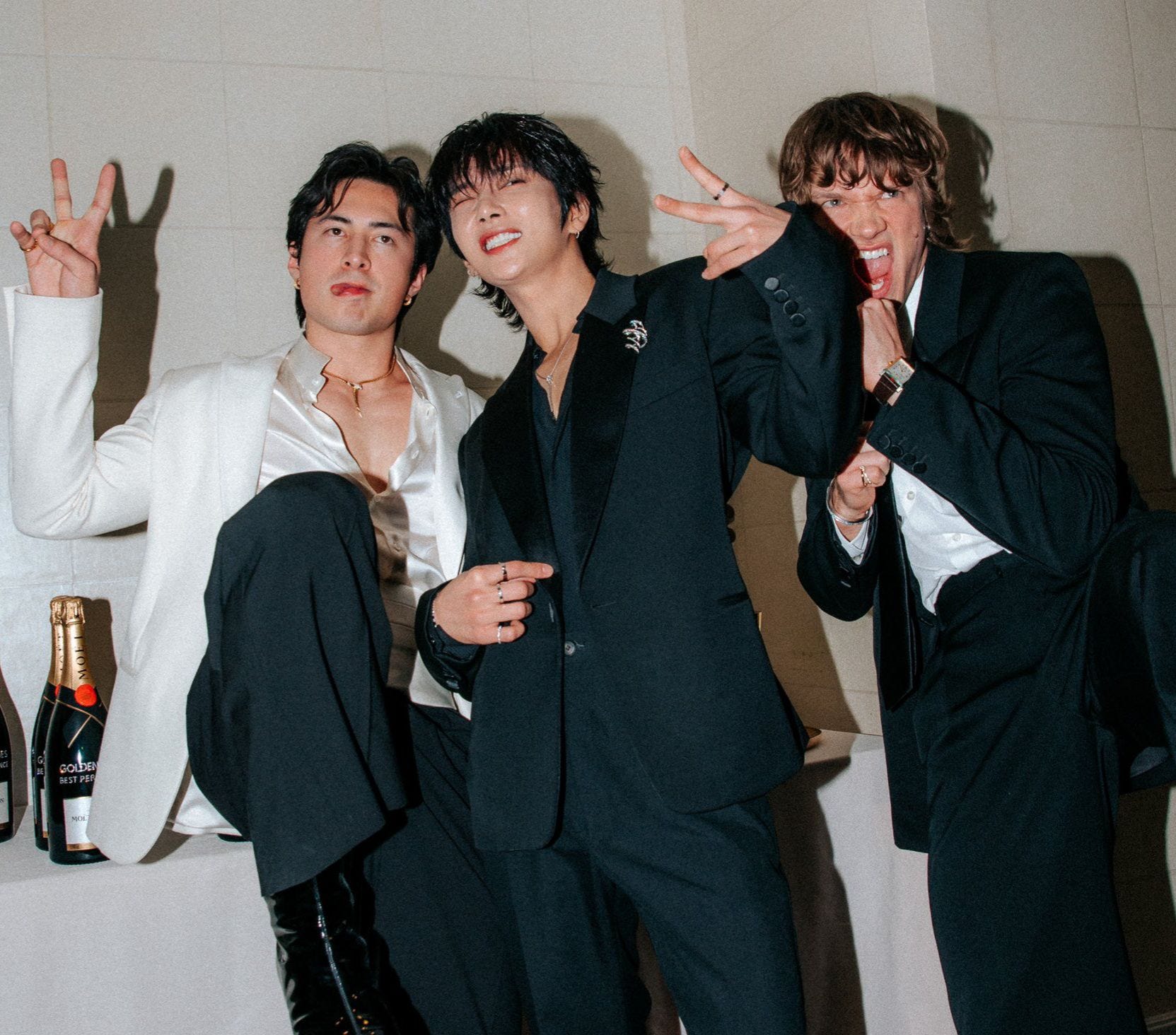 Joshua Hong of SEVENTEEN meets the lead actors of Heated Rivalry*, Hudson Williams (plays Shane Hollander) and Connor Storrie (plays Ilya Rozanov) at the Golden Globes. *TV-MA. Available to watch on HBO Max.